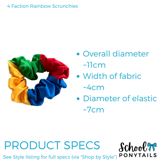4 Faction Rainbow Scrunchies - Red, Blue, Green, Yellow